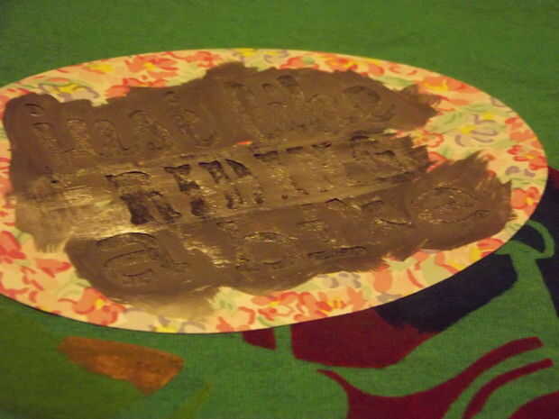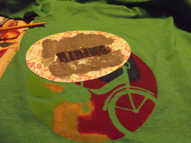 quería que las palabras sobre la imagen, así que tuve que esperar para añadirlos. Tomó una media hora para secar, pero me imagino el más grueso de la pintura, más tiempo tarda en secar. Después se seca, añadir la segunda plantilla y pintar otra vez. Deje que se seque un poco, luego retirar.
