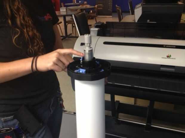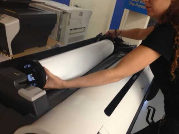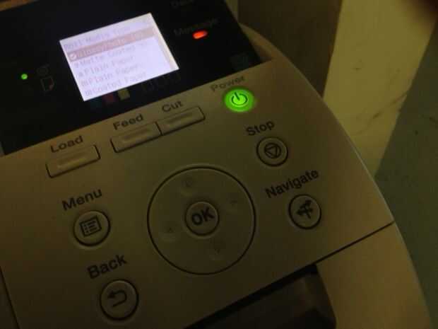 En el panel de control a la derecha selecciona el tipo de papel va a imprimir en. Una vez que elija este papel comenzará a alimentar hacia adelante y hacia atrás. Esta es la impresora tratando de alinear el papel correctamente. Deberá volver a introducir el papel si la impresora encuentra que es alineación demasiado lejos. Simplemente el papel de rodillo nuevo agradable y firmemente y asegúrese de que esté al ras con el soporte del lado derecho. Esto le ayudará a alinear el papel cuando se alimentan en la boca de la impresora.