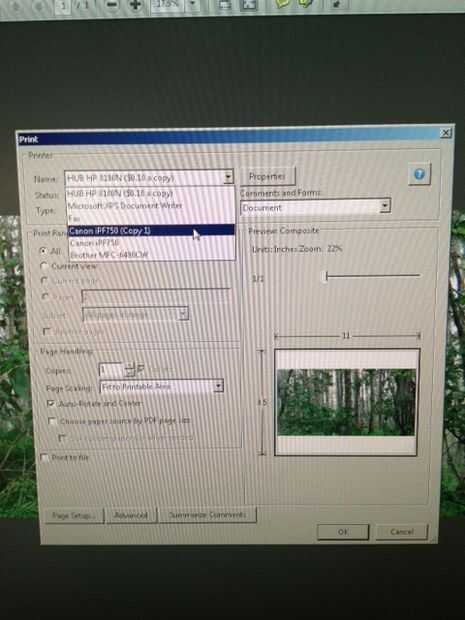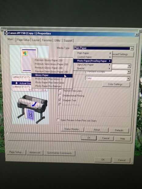 Asegúrese de que selecciona la impresora de Canon iPF750(Copy1). Se trata de la impresora en el lugar de Menlo Park.