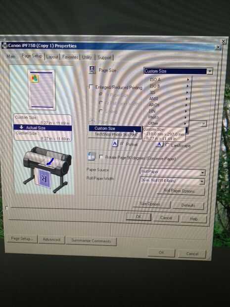 Para cambiar el tamaño de su impresión al tamaño deseado, que fui a la ficha Configuración de página y las custome tamaño de papel del tamaño de la página de menú desplegable. De allí entré en el tamaño que quería mi impresión que.