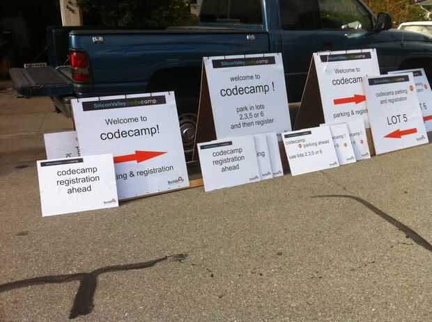 estos son algunos de los signos del finales.  probablemente la principal cosa que haría diferente es usar una letra más grande.  pasando de 18 x 24" a 36" x 36" hizo una enorme diferencia en visibilidad.   Cuando transporte un uno-marco (tablero sándwich) doble la Junta sobre sí mismo para proteger el vinilo de raspaduras.  almacenan mejor así.  He utilizado bridas para formar la bisagra.