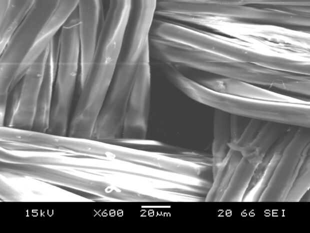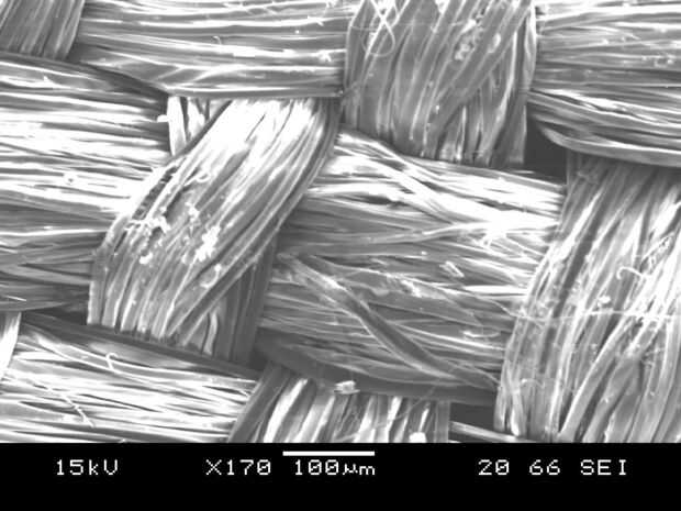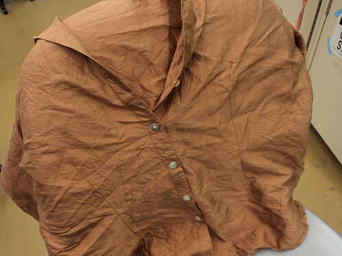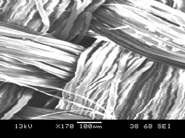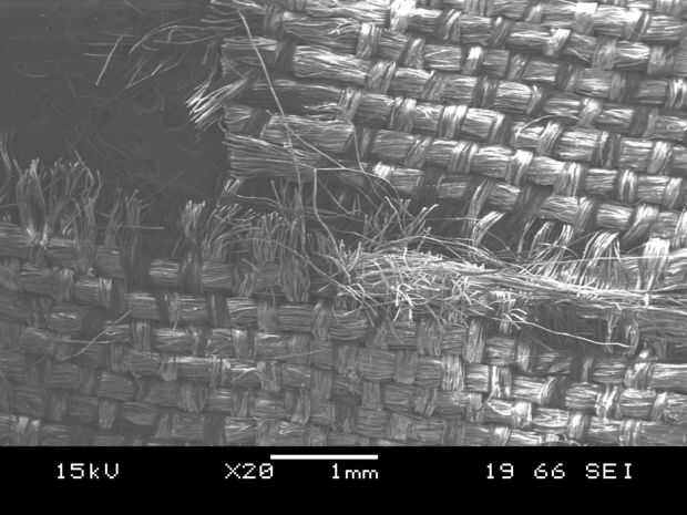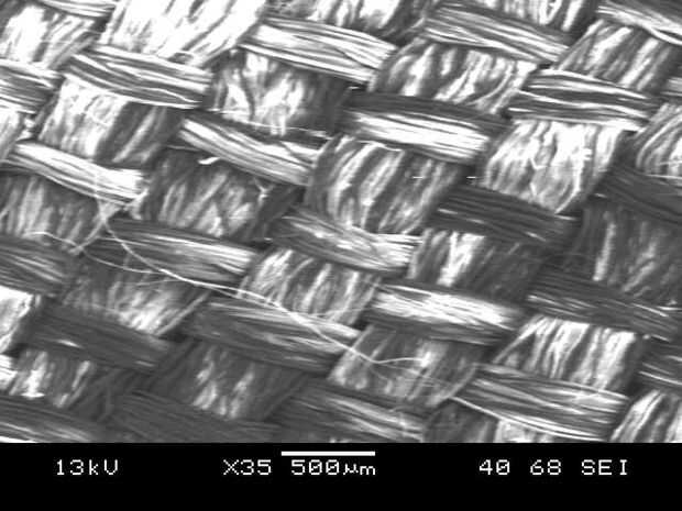 Esta camisa es de seda y tejido, que es una buena combinación de una fibra fuerte, fina y no elástico de la armadura, sin embargo en las imágenes de microscopio, es claro que los hilos de la urdimbre y la trama no son la misma anchura, que podría conducir a las roscas del desplazamiento alrededor y creando agujeros entre ellos por lo tanto, no una perfecta.