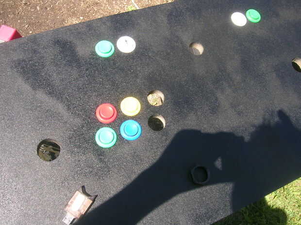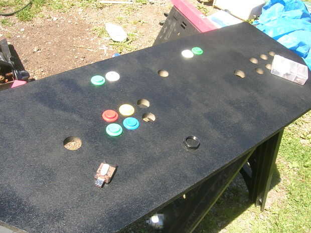 Mi panel tiene 2 jugadores 6 botones y 2 créditos y 2 inicia también una salida y pausa. El campo de juego / diseño del panel que tengo es un diseño influenciado mío he estado buscando este tema hace algún tiempo y durante este tiempo he pensado en lo que me gustaba y lo que funcionaría. Mi panel lo tengo en 3 bisagras para que el teclado por debajo en expuesto en caso lo necesite. Tengo una foto del panel antiguo y un cuadro de la pieza recién cortada de MDF que "Debe ser" el nuevo panel. Más adelante espero realmente insertar un trackball (misil comando rocas)