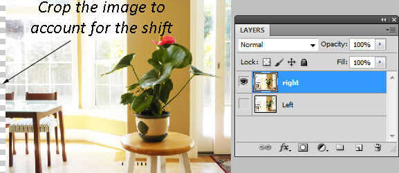 Debido a la alineación en el paso anterior, la imagen de la derecha se desplaza hacia la derecha dejando un espacio vacío a la izquierda. Utilice la herramienta Recortar de la caja de herramientas para recortar la imagen para eliminar el espacio vacío.