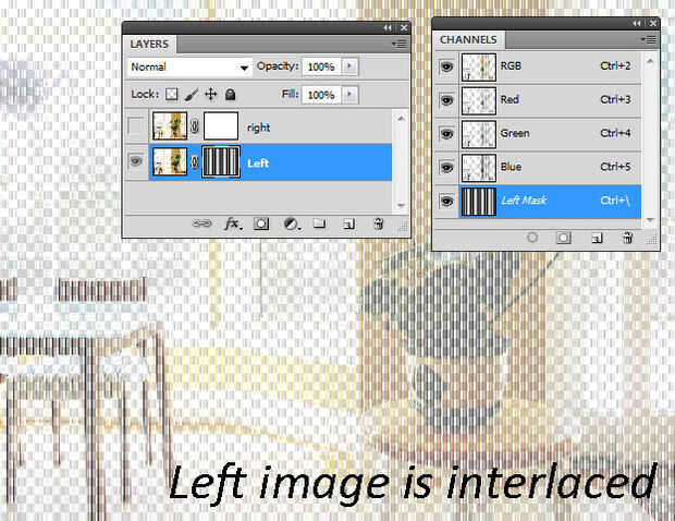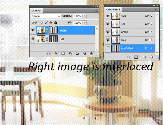 Destacar la capa derecha de la paleta [capa]. Repetir lo mismo para la capa derecha, es decir, pegar el patrón para la capa derecha, la inicia uno con raya negra, a la capa de máscara bajo [canal].