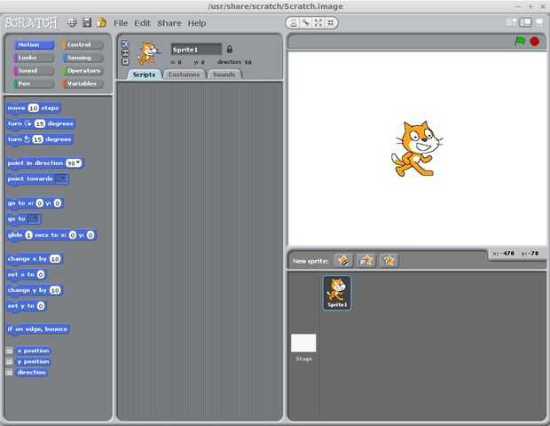 -El lado derecho muestra tu sprite (el valor predeterminado es un gato), que es el carácter que se utiliza para mover como su primer intento.