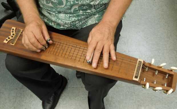 Rasgueo de las cuerdas y escuchar la guitarra de acero hawaiano.