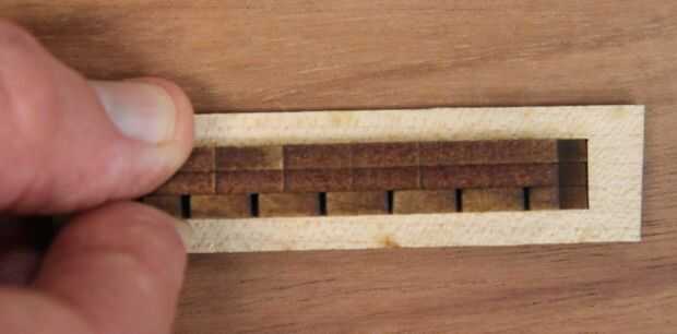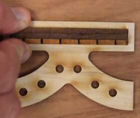 Sobre una superficie plana con cuidado unir las cuatro piezas del puente, comprobando que están en el orden correcto y asentamiento de la superficie de trabajo plana. Repetir este proceso para el montaje de la tuerca. Antes de montar las piezas pueden ser enarenó ligeramente pero tenga muy cuidado no a modificar el borde de ataque de la tuerca y el puente. Las superficies superiores de que estas piezas son precisamente caminó para compensar el grosor de la cadena y la vanguardia frente a la longitud de la cuerda de la tuerca y el puente deben seguir siendo fuerte y sin cambios.