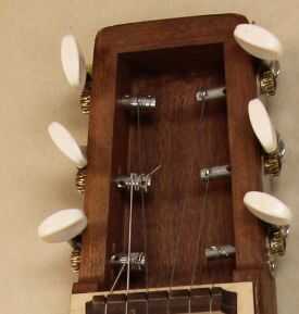 Use un cortador redondo en 1/8" radio filete los bordes de la parte trasera y los bordes de la tapa armónica y tablero del traste.