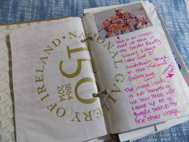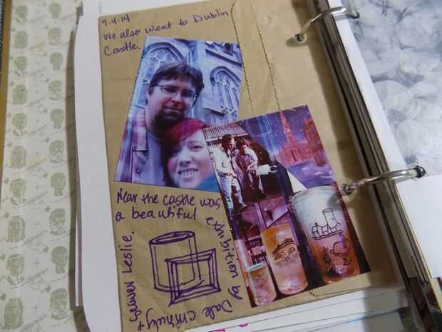Inicialmente hice una revista específicamente para el viaje que estaba lleno de diferentes tipos de papel y quitados para dejar espacio para poder pegar cosas en páginas. Después de usar una revista con carpeta de mitad y mitad libro en casa para aproximadamente un mes antes del viaje, al final decidió traer un libro vacío con sólo una carpeta. Así, sería casi cada parte del diario del viaje.