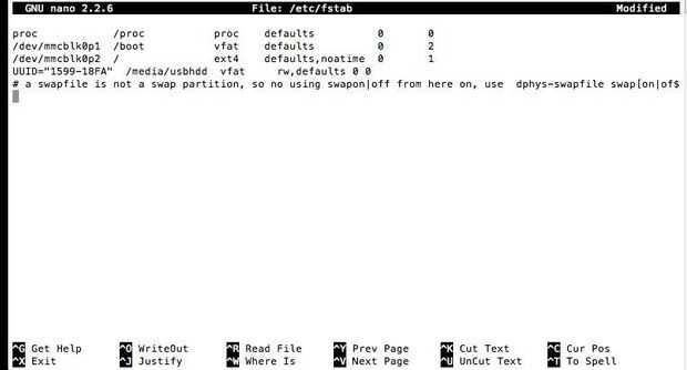 Vamos a añadir una línea en este archivo para describir el disco duro. Su UUID será único, así que por favor actualizar sus datos. De vfat probablemente que mismo y todo lo demás serán iguales.