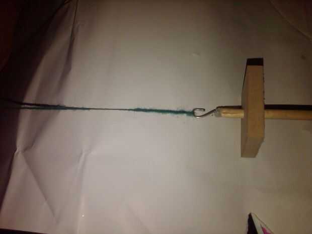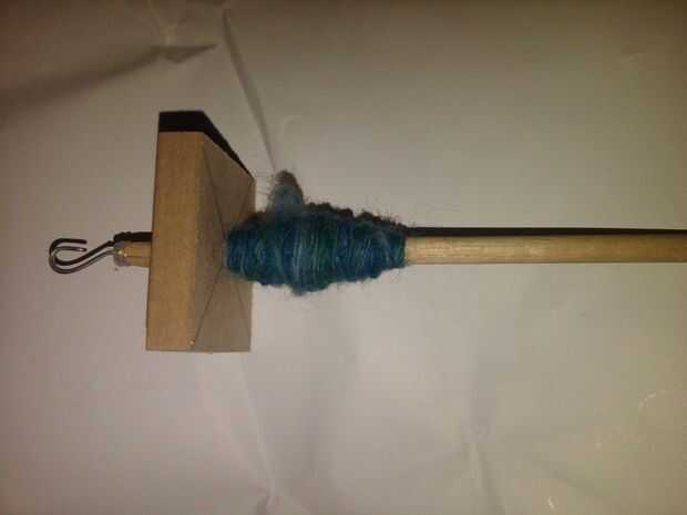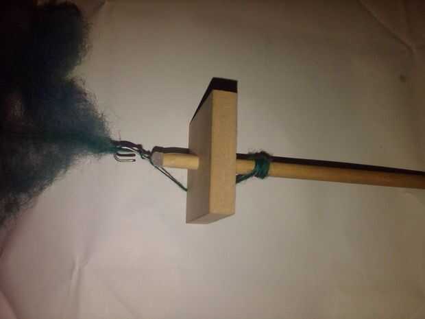 Continuar la redacción (estirar y tirar de la fibra a través de los dedos) y girar el huso hasta que todos de su fibra se ha consumido y se enrolla en el eje del husillo.