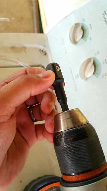 Usé un destornillador de casquillo de 1/2 pulgada para mi taladro y un conector de 32mm para montar en el extremo del gato.