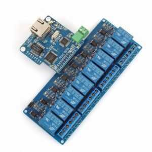 Viene el dispositivo de relé 8 rj45 sainsmart. Usando su aplicación gratuita cualquiera puede controlar dispositivos que pueden encender y apagar.