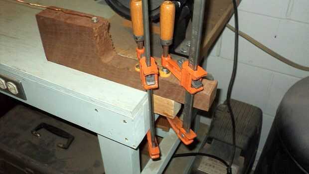 Cerrar las mordazas para extender completamente la viga. No se olvide de permitir cierta pérdida de cable debido a las necesidades de uso de este método de sujeción, así que si quieres longitudes específicas, cortar a un tamaño demasiado largo. Bastará con un simple tornillo en trozo de madera como un punto de anclaje de bloque extremo; sujetar a la mesa según sea necesario. Forma un gancho en ambos hilos extremos, introduzca y apriete ambos tornillos de la abrazadera.
