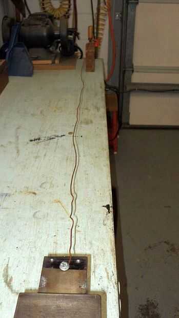 Abra las mordazas del tornillo, mover la viga lejos del bloque final y ver el alambre como endereza