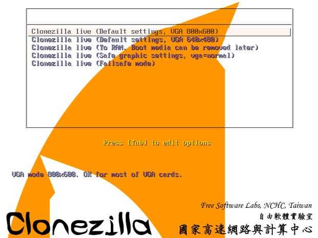 Clonezilla, basado en DRBL, Partclone y udpcast , permite bare metal backup y recuperación. Existen dos tipos de Clonezilla, Clonezilla live y Clonezilla SE (edición del servidor) . Clonezilla live es conveniente para la sola máquina backup y restore. Mientras que Clonezilla SE es para despliegue masivo, puede clonar muchos (más 40!) equipos simultáneamente. Clonezilla guarda y restaura utilizado bloques en el disco duro. Esto aumenta la eficacia del clon. A aula C de NCHC, Clonezilla SE se utilizó para clonar 41 computadoras simultáneamente. Tardó unos 10 minutos para clonar una imagen 5.6 GBytes en todos los 41 equipos vía multidifusión!