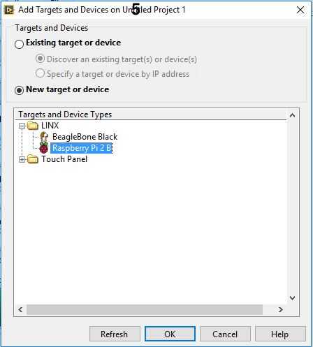 - Seleccione "Frambuesa Pi 2 B" en la carpeta LINX y haga clic en aceptar