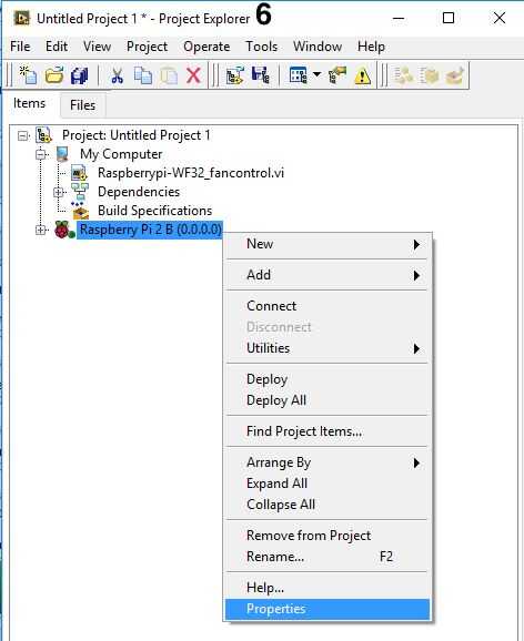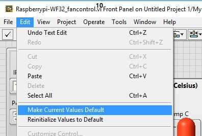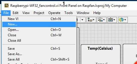 - Abrir mi proyecto de LabVIEW "Raspberrypi-WF32_Fan_Control" se coloca por debajo y entonces seleccione Archivo -> nuevo