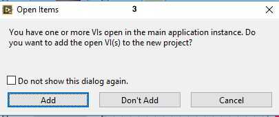 - Una ventana emergente le preguntará que si desea agregar el VI abierto al nuevo proyecto, seleccione Agregar