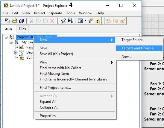 - Haga clic derecho en "proyecto: Untitled Project 1" y seleccione "Nuevo"» "Y los dispositivos de destino"