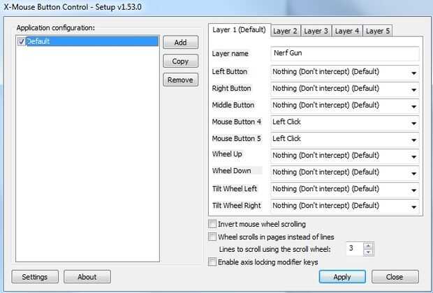 Para asignar el gatillo de la pistola de Nerf con el botón izquierdo del ratón he utilizado el software de X-Mouse (http://www.highrez.co.uk/downloads/XMouseButtonControl.htm ) y el botón set 4 y 5 para activar el botón izquierdo del ratón.