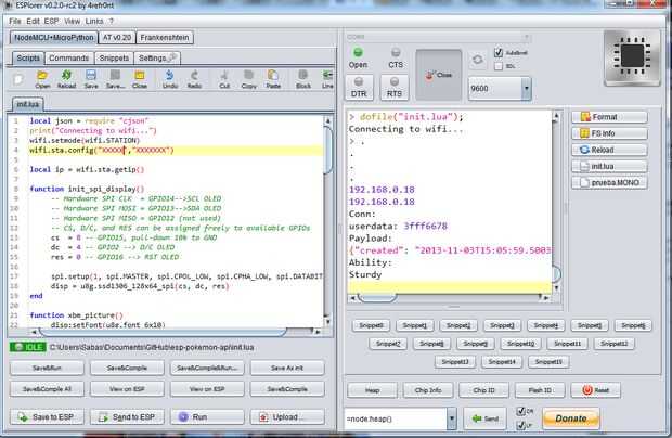 Una vez teniendo instalado el firmware NodeMCU en nuestro ESP8266 y el ESPlorer en nuestra maquina, hay primero subir el archivo "prueba. MONO"y por ultimo el init.lua debe contener lo siguiente: