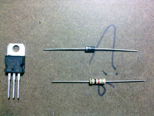 Si quieres saber más sobre Darlington transistores que puede pasar algún tiempo en Wikipedia leer http://en.wikipedia.org/wiki/Darlington_transistor es un interesante pero realmente no necesita entender que utilice el TIP120. Caramba no saben lo que la mayoría de este medio de cosas.