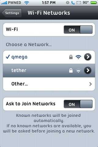 Abra la aplicación de configuración de tu SpringBoard, luego pulse 'Wi-Fi' y luego el nombre de su nueva red. Si usted utiliza una contraseña, usted necesitará entrar en él. Una vez que están conectados, está listo para configurar el túnel. Si toca la flecha al lado del nombre de la red, se mostrará tu dirección IP, que necesitará más adelante.