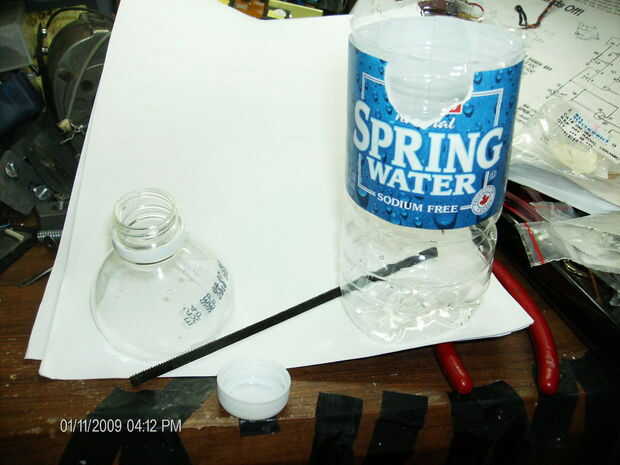 Lo primero que hice fue quitar la parte superior de la botella. Utilicé una hoja de Sierra de marquetería pequeña (es el mango necesita reparación), como se muestra a continuación.
