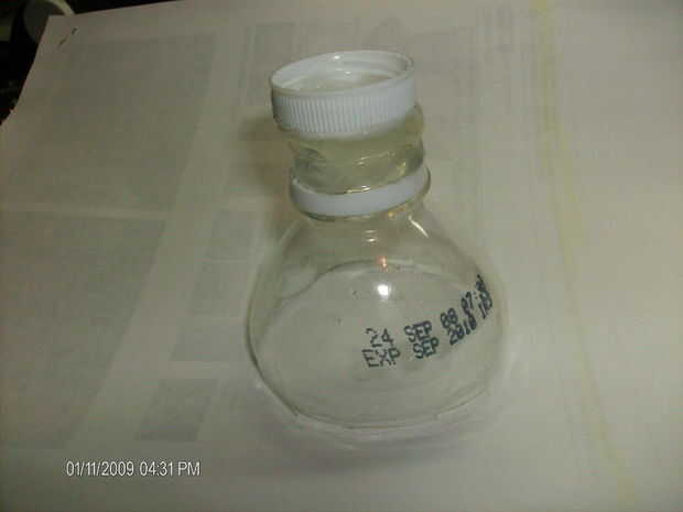 La tapa puede ahora ir en la parte superior de la botella, sólo caliente encolarla en boca abajo, para que los hilos se pueden utilizar para asegurar a otra botella.