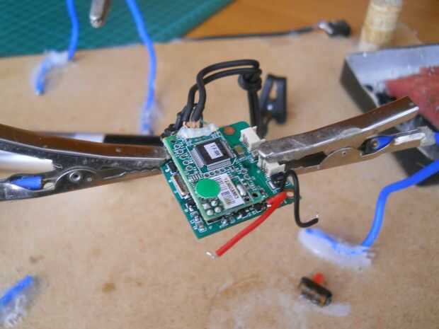 Queremos modificar este juguete de EEG para transmitir datos vía Bluetooth primero desmontar el caso. Los tornillos están debajo de la etiqueta engomada. Retire el adhesivo y la parte posterior del dispositivo y encontrarás dentro de un pequeño circuito. El que está en el circuito principal es el chip de Neurosky TGAM. Esto está conectado con cuatro pernos de cabecera al microcontrolador principal tablero así que tener un soldador y retire cuidadosamente este circuito. Ahora soldar los tres cables al pin GND al pin VCC y el pin T. El T-pin es el pin transmisor con 57600 baudios, esto envía los paquetes de datos a nuestro microcontrolador, pero esta habían conectado directamente a un módulo de BT de esclavo HC-06. La HC-06 es 9600 baudios pero no te preocupes nosotros lo arreglamos este problema. Si usted suelda los tres cables a los que pueden construir en su propia fuente de alimentación recargable. He utilizado una batería de iones de litio de 500mAh, un circuito de cargador USB, un paso de 5v para circuito y dos resistencias (100 ohm y 200 ohm) para asegurar una perfecta 3,4 voltios de potencia de la fuente para el chip y para el módulo de Bluetooth. Siga el esquema para construir el circuito que se necesita en el auricular. Si el circuito se hace configurar el módulo Bluetooth.