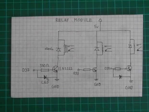• Una imagen vale más de 1 mil palabras, así que en lugar de tratar a la escritura cómo debe conectar las partes en la búsqueda de PCB en el esquema si el pin de "Señal" recibe señal de Arduino relé se encenderán. El transistor amplifica la señal para asegurar suficiente energía fot los relés. Vamos a utilizar 37-38-39 pins para controlar los niveles máximos y mínimos de cada relé.