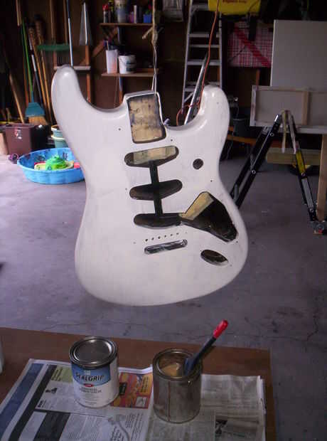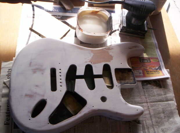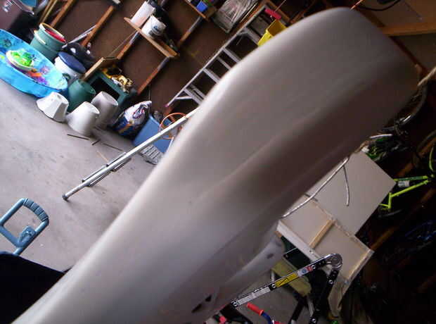 No trate de lo que hice - usando una lijadora eléctrica. Comió a través de la 1 º capa fácilmente. Que tenía que hacer esa sección. Después de 4 capas - con mojado lijado con grano 220 entre las capas, finalmente terminé lo con grano 320. El lijado es mucho tiempo pero vale la pena el esfuerzo. Verá marcas de pincel que eventualmente arena hacia fuera con más capas y lijado. Deje que el papel de lija hacer el trabajo y no escarbar. También no dedico mucha atención a los detalles en las áreas que cubrirá el golpeador. De hecho, después de la 1 º capa, enmascarados fuera de esta área para no acumular con sellador/imprimador gotas.