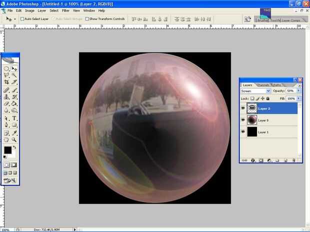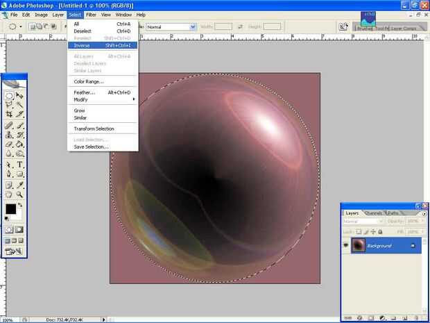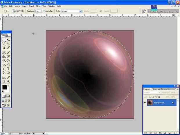 Luego, llenan la capa de negro, luego haga clic en la capa de la esfera y vuelva a seleccionar su selección anterior y borrar el fondo blanco.