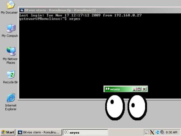 Este ' ible cubiertas con sourceforge.net/projects/xming/ y www.bitvise.com/tunnelier como sus soluciones Windows y Openssh para el lado de Linux. En una nota lateral, todo esto también puede hacer uso de LogMeIn Hamachi como un VPN fácil de usar.