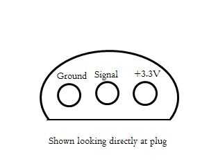 El controlador sólo utiliza tres cables: + 3.3V, de señal y tierra.