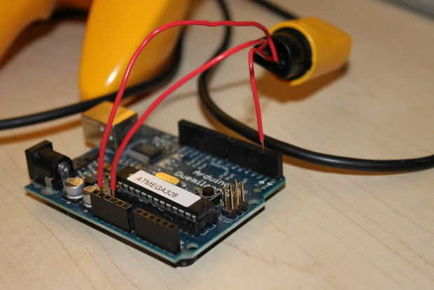 Busca directamente en el enchufe, terreno quedo más lejos, señal está en el centro, y + 3.3V está a la derecha. Con el cable, conecte a tierra y + 3.3V a los pines correspondientes en el Arduino y conecte el cable de señal al pin Digital 2 en el Ardunio.