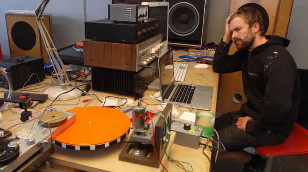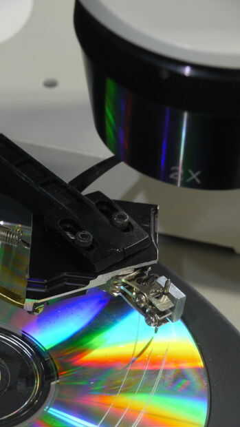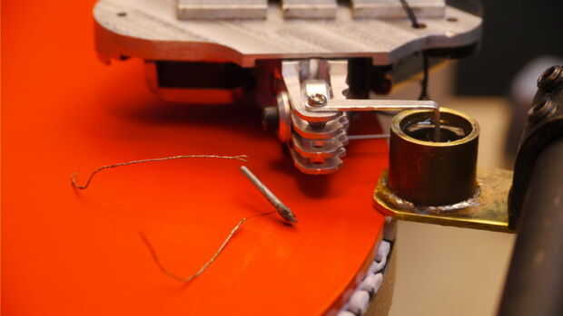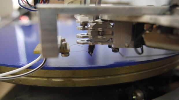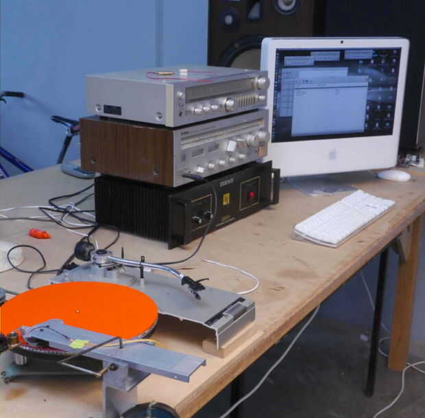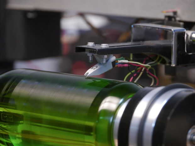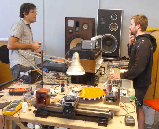 También montamos un cartucho en el extremo de la punta de corte para controlar el audio como fue cortado a tiempo real, también lo que nos permite comparar la diferencia de calidad entre el cortador y la ranura resultante al reproducir.
