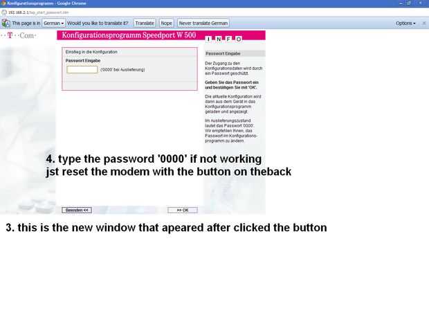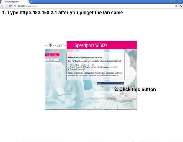 Abra una ventana del navegador, yo uso Google Chrome pero funciona con Internet Explorer o Firefox, Opera, Safari,.... Tipo http://192.168.2.1 y pulse Intro. Siga los pasos en el orden de las fotos.