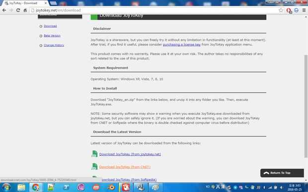 Ir a joytokey.net/en/download y descargar alegría a llave, preferiblemente de CNET o Softpedia.