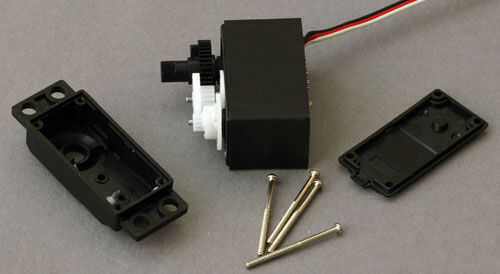 Dentro de un servo es un tradicional motor de la C.C., un potenciómetro (resistencia variable) y circuitos de control. El potenciómetro está conectado al motor que cuando gira el eje del motor resulta también el potenciómetro. El controlador puede medir el voltaje en la patilla central del potenciómetro y obtener una indicación de la posición del eje. El controlador recibe una señal (ver siguiente paso) del usuario que establece una posición deseada. El controlador compara la posición deseada para la posición actual del motor y utiliza esa información para activar el motor en una dirección que minimiza el error.