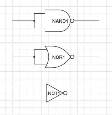 Si hacer una entrada en ambas entradas de la NAND o compuerta NOR, creará el equivalente de una puerta no.