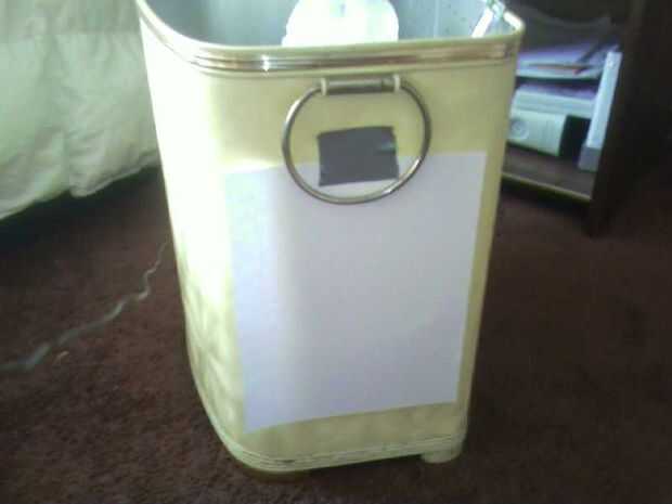 Agarra lo que vas a montar el pedal contra. Estoy usando mi cesto de la ropa para esto. Sólo asegúrese de lo que utilizas es perfectamente recto. Si elige arma del pegamento el pedal contra el objeto puede poner un pedazo de papel en el objeto de no tener pegamento en él.