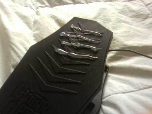 Antes de que pegue tu pedal hacer seguro que encontrar el punto donde se une la parte superior de la parte inferior del pedal GHWT y el batidor. (consulte la imagen de abajo si no sabes lo que quiero decir). Una vez usted localizar un buen lugar poner cuatro líneas de pegamento en la parte superior de la parte del pie del pedal y palillo a su objeto. Asegúrese de que hacerlo rápidamente antes de que el pegamento se seca. Después de que pegue puede cinta adhesiva la parte inferior y superior del pedal para mantener segura.