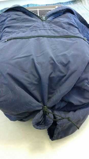 Deslice el borde se reunieron a través del lazo y empate apretado. A menos que sea por debajo de cero, me gustaría dejar una sección inferior pequeño suelto al aire de ventilación. Recuerde - el aire caliente sube, aire frío se hunde, así que es un borde inferior!