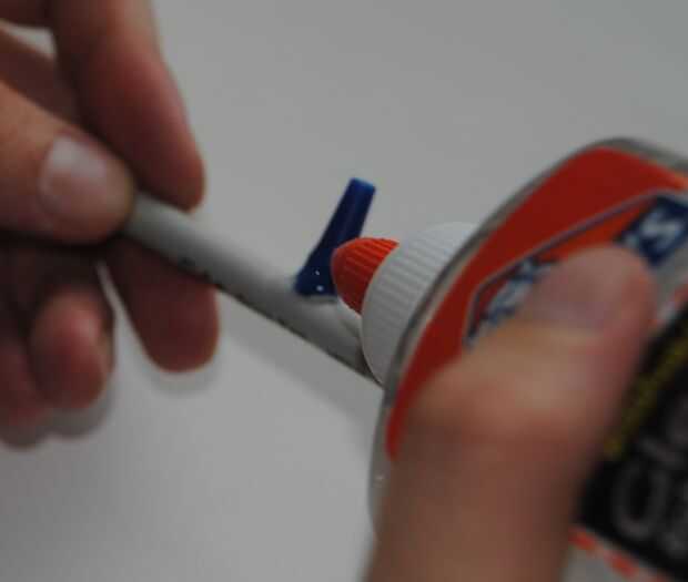 Después de que has creado un agujero pequeño y la punta del lápiz se ajusta perfectamente, debe pegar alrededor del agujero para ayudar a sellarlo. No quiero ningún escape del aire!