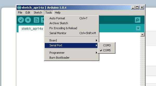 podemos probar nuestro adaptador usando el IDE de arduino. cambiamos el puerto a COM5 y poner un jumper en los adaptadores pin TXD y RXD.
