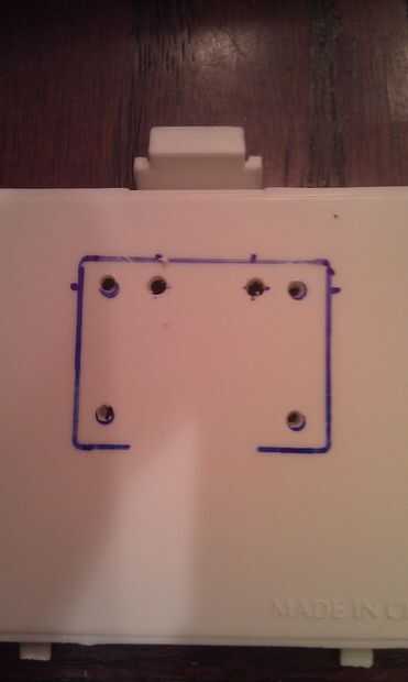 4) también transferir la ubicación de los agujeros en la tapa de la batería usando el marcador. También transferir la ubicación de los contactos VCC y GND.