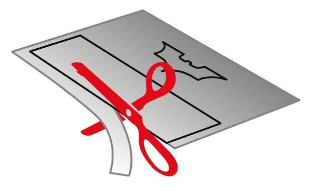 Un pedazo similar de papel de marcar y cortar luego el logo de Batman. El logo debe encajarlo en el área de la lente. Poner una tira de cinta adhesiva de doble cara en la parte posterior de la hoja antes de cortarlo hacia fuera.
